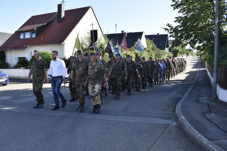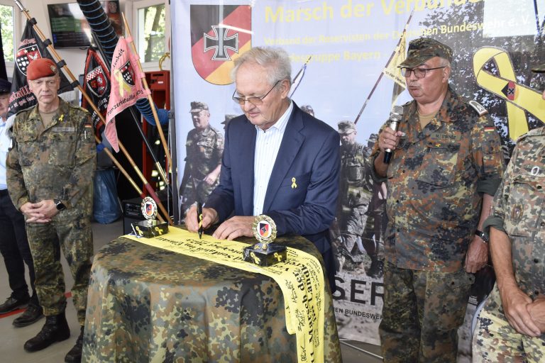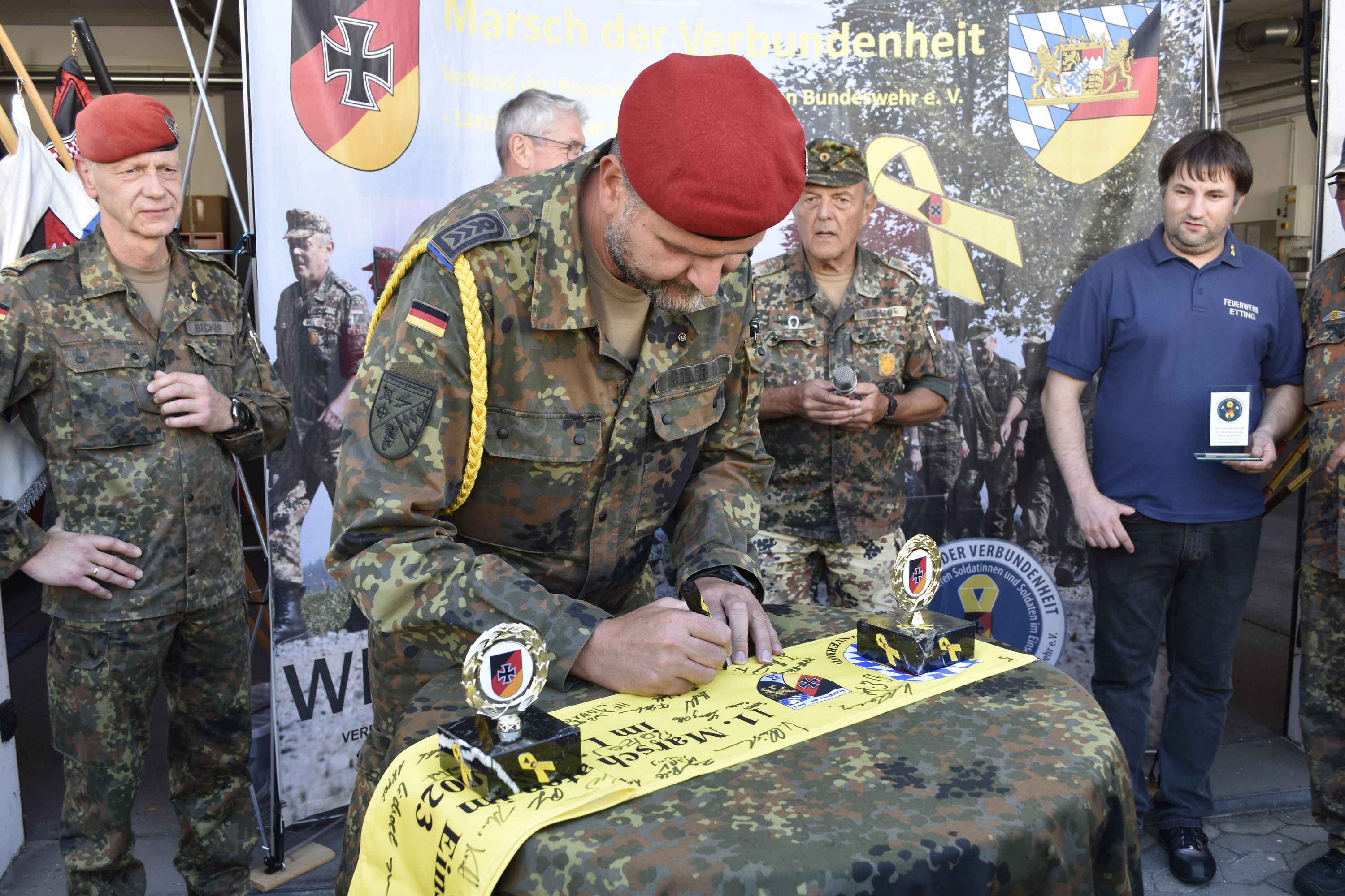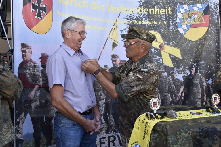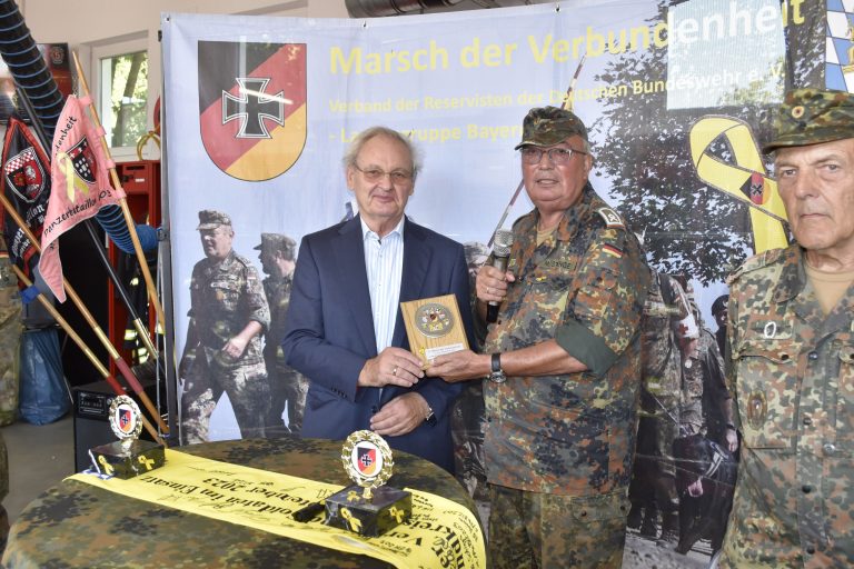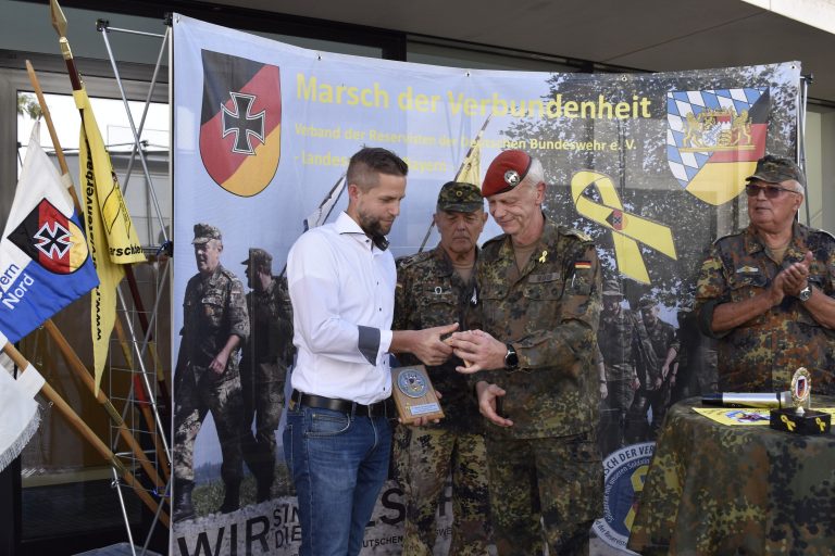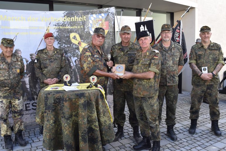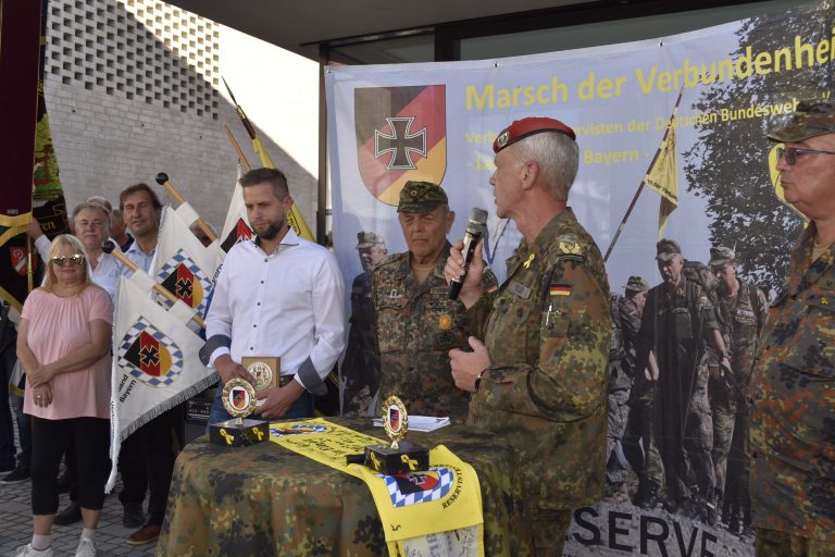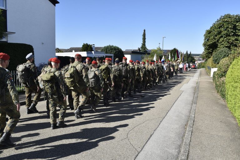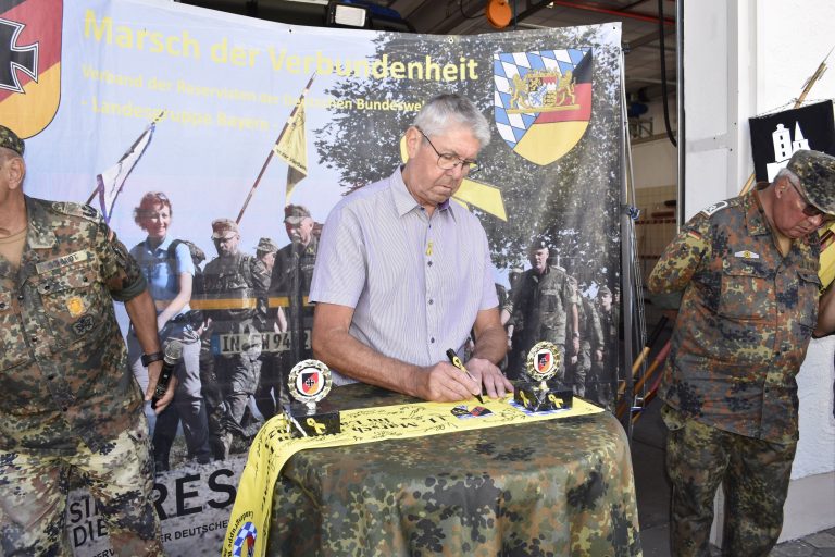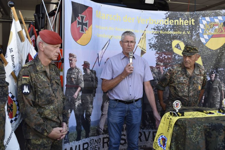 Sie liebe Marschteilnehmer sind es, die das Bild der Bundeswehr in die Öffentlichkeit transportieren und dadurch unmissverständlich deutlich machen, dass Frieden nicht selbstverständlich ist, sondern es Menschen geben muss, die sagen: „Ich diene!“. Ich danke Ihnen für Ihren Einsatz und wünsche Ihnen einen erlebnisreichen Marschtag.“
