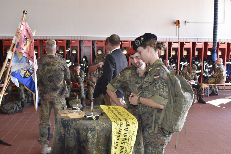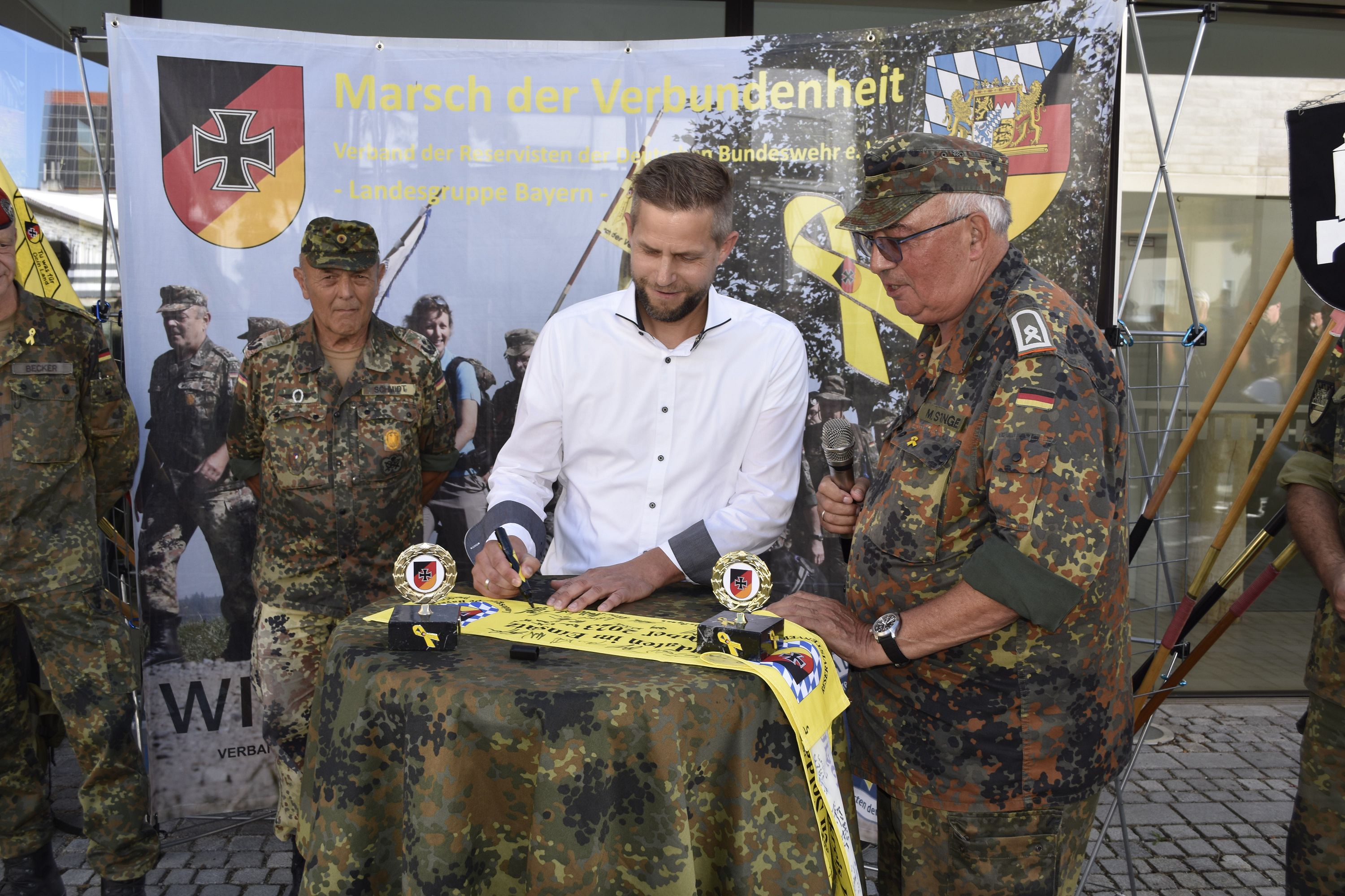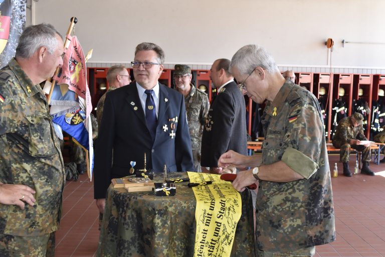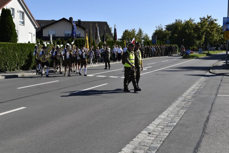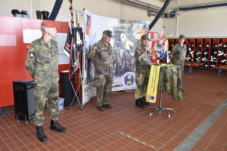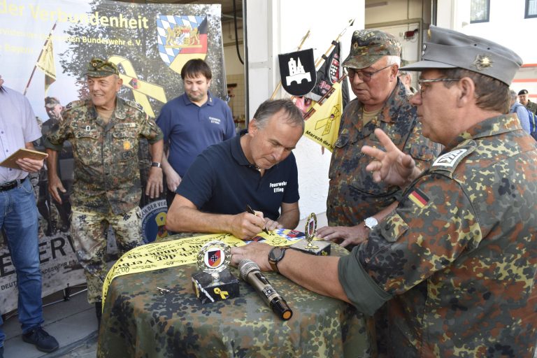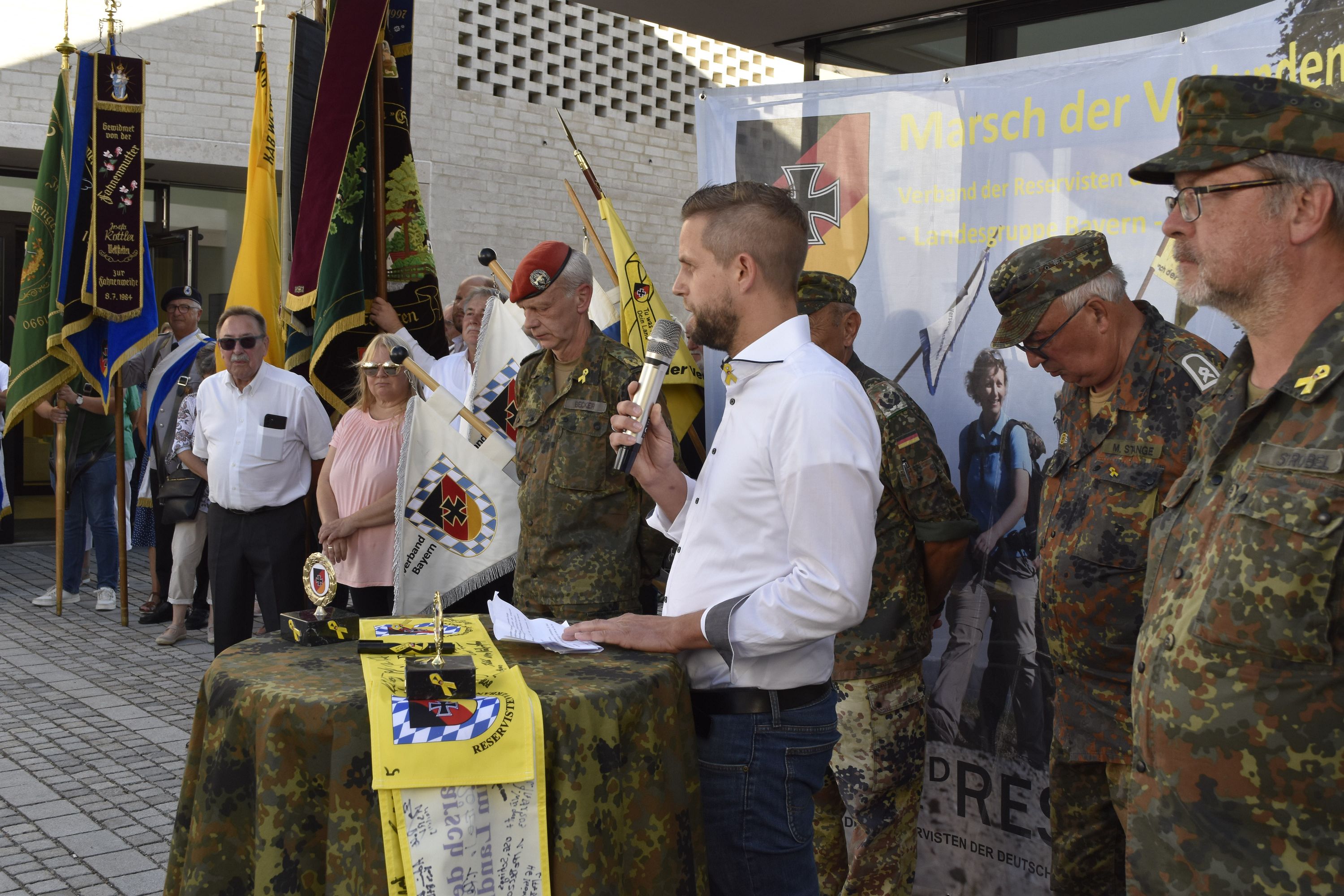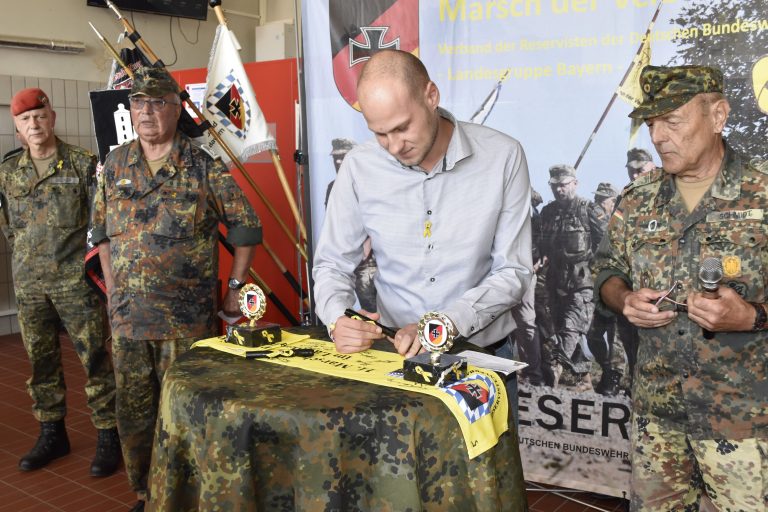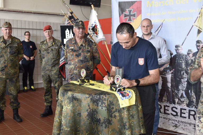 Sie liebe Marschteilnehmer sind es, die das Bild der Bundeswehr in die Öffentlichkeit transportieren und dadurch unmissverständlich deutlich machen, dass Frieden nicht selbstverständlich ist, sondern es Menschen geben muss, die sagen: „Ich diene!“. Ich danke Ihnen für Ihren Einsatz und wünsche Ihnen einen erlebnisreichen Marschtag.“