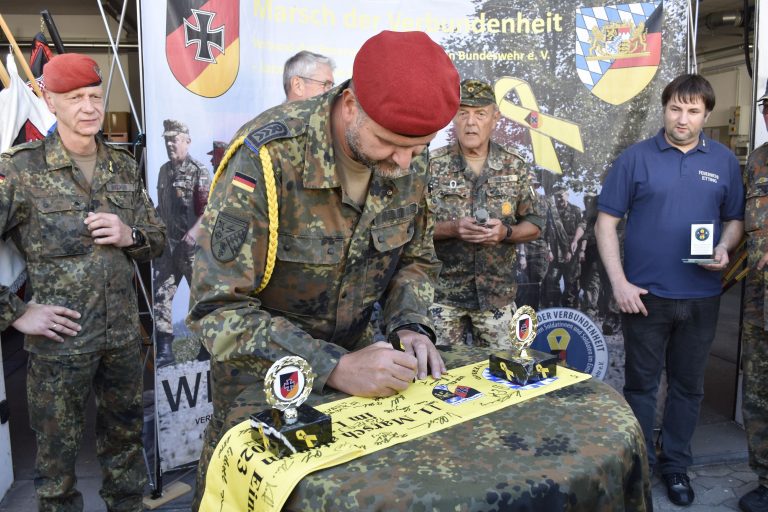 „Sehr gerne habe ich die Patenschaft für die heutige Etappe des Marsches der Verbundenheit übernommen. Ins Leben gerufen, um den Soldaten in den mandatierten Einsätzen ein Zeichen der Solidarität zu übermitteln, hat er heute – gerade auch wegen der veränderten europäischen Sicherheitslage – mehr Bedeutung denn je.