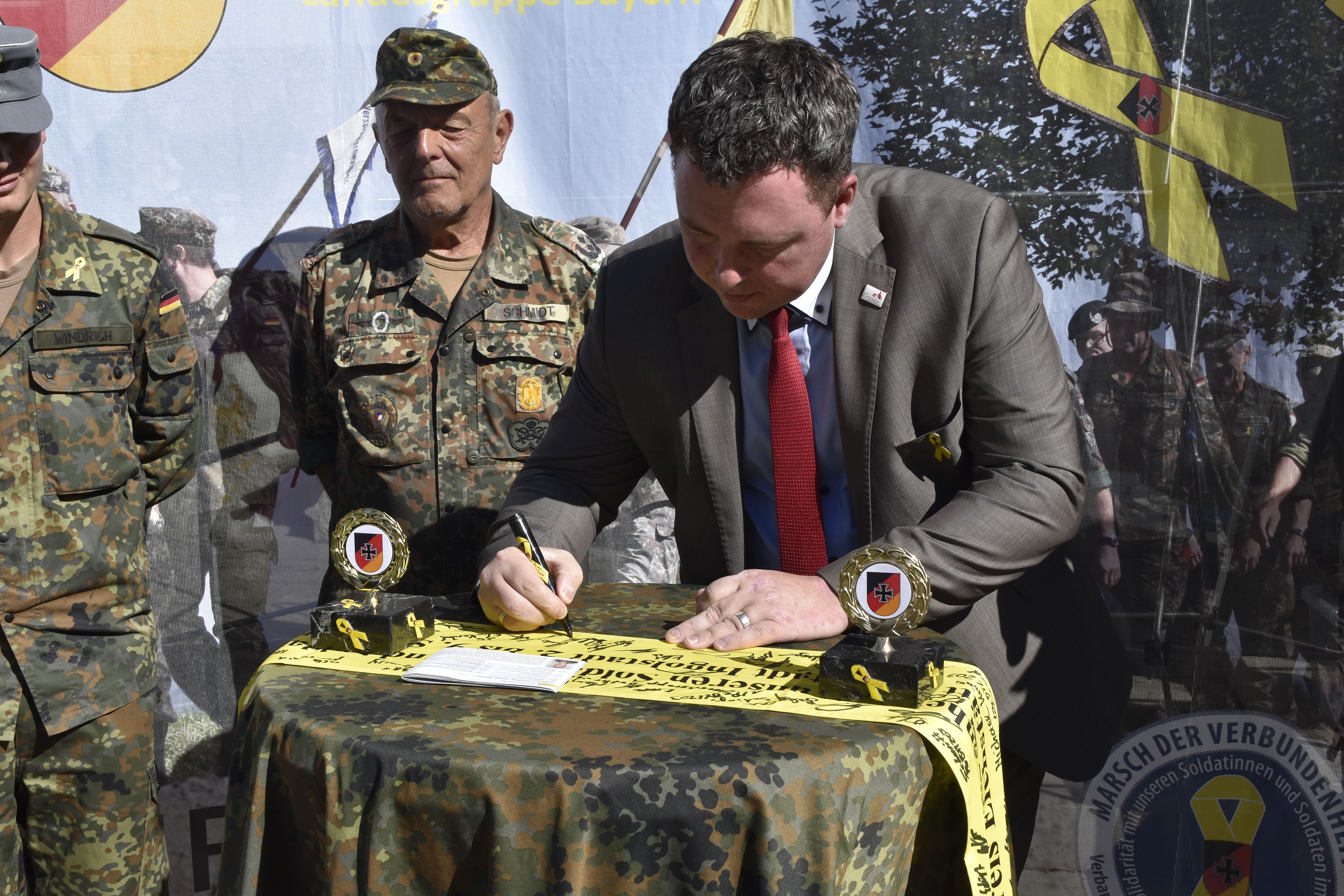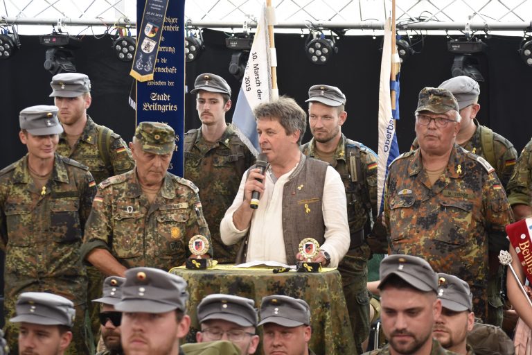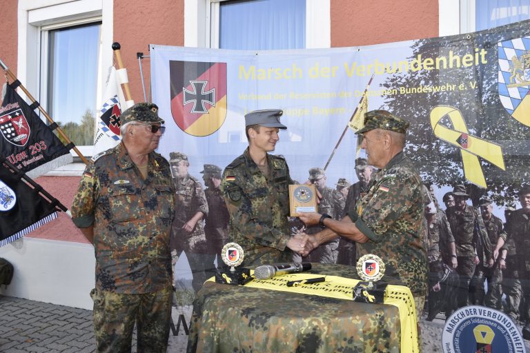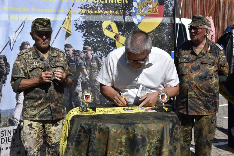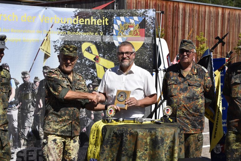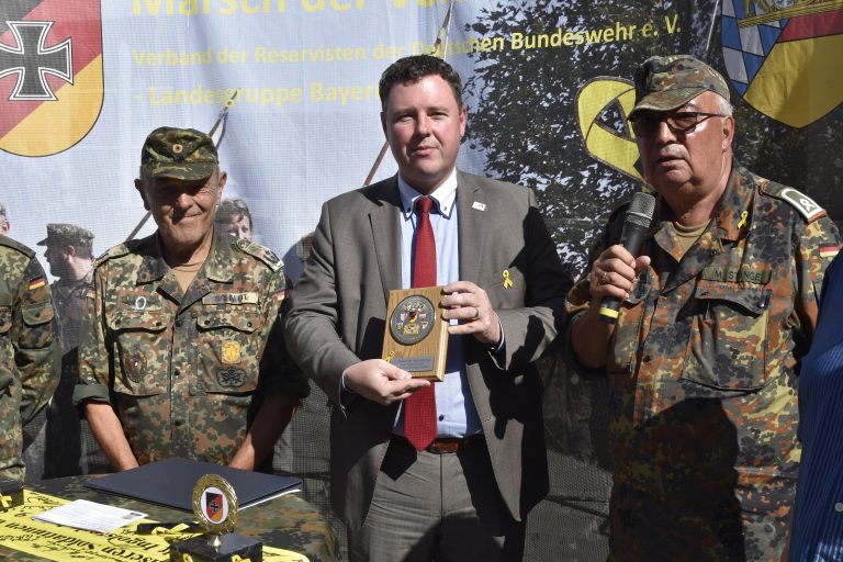 „Als Beauftragter für Reservistenangelegenheiten freue ich mich sehr darüber, eine weitere Gelegenheit für die Intensivierung der Solidarität der deutschen Bevölkerung mit der Bundeswehr unterstützen zu dürfen. Dass der Marsch der Verbundenheit durch die Reserve – einer besonders starken Brücke zwischen Zivilgesellschaft und Militär – in Verbindung mit der Öffentlichkeit organisiert wird, zeigt bereits den Erfolg der „Gelben Schleife“. Ich wünsche allen Teilnehmenden einen erlebnisreichen Marsch von Denkendorf nach Beilngries im Zuge des wunderschönen Altmühltals, um auch dort ein Zeichen der Solidarität zu setzen.“
