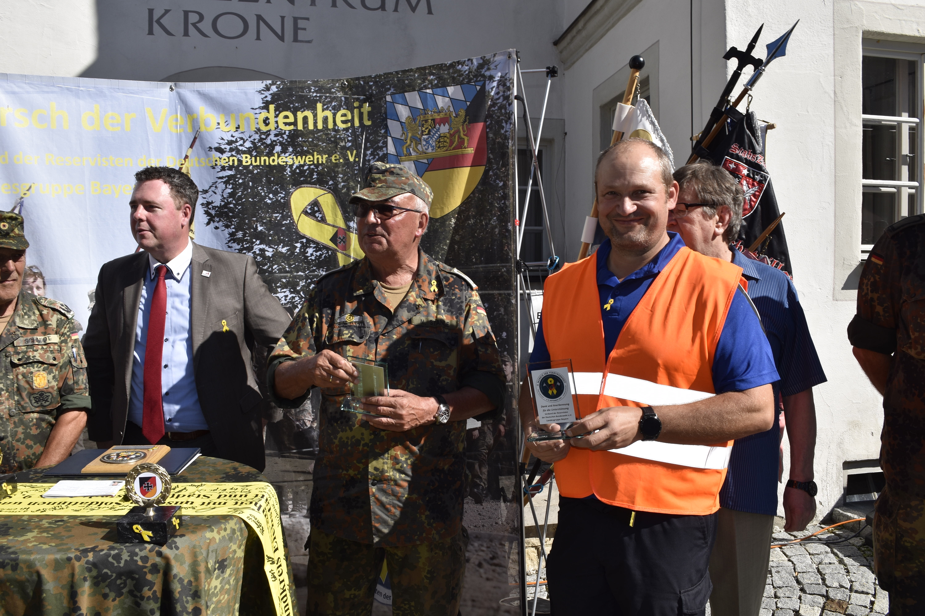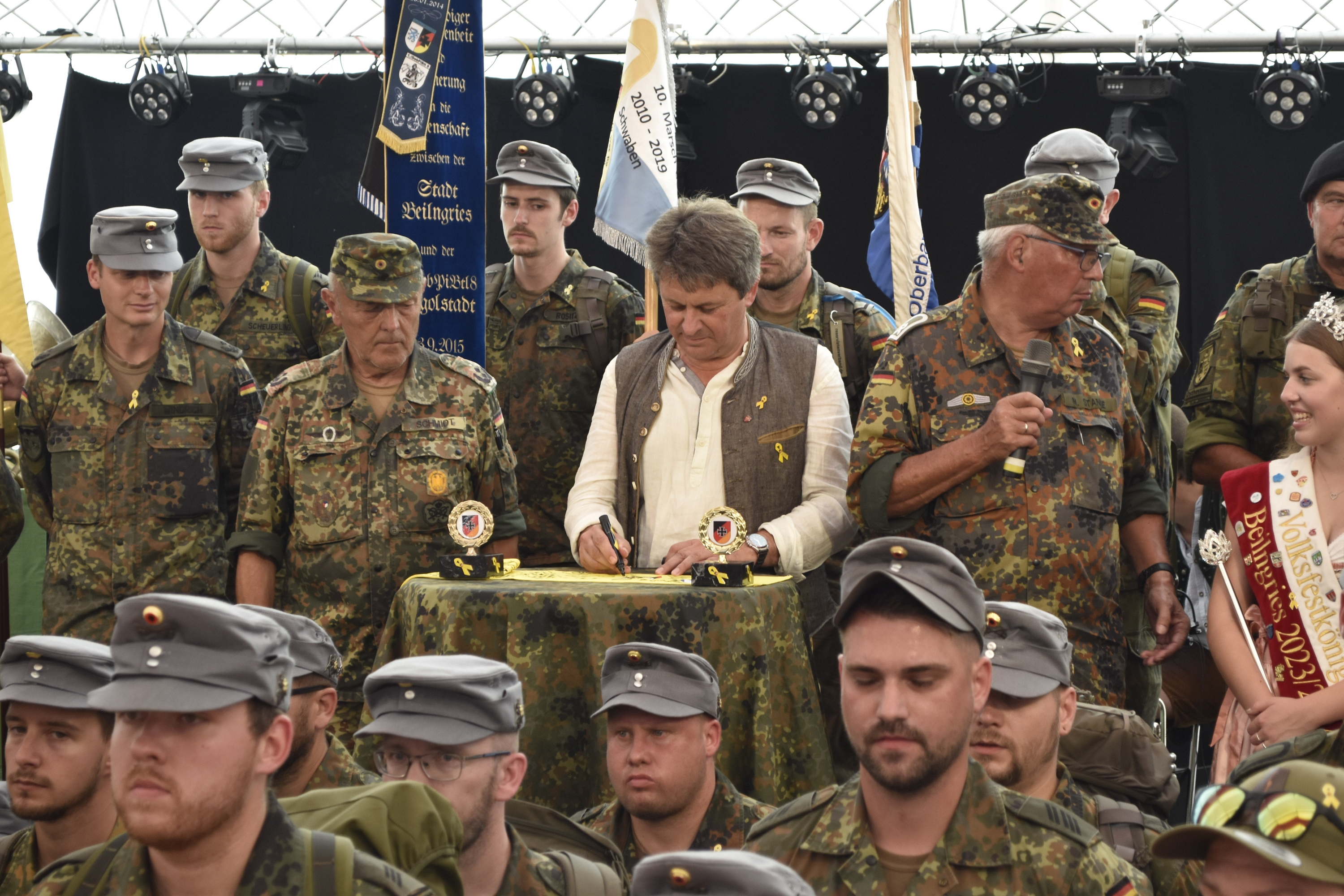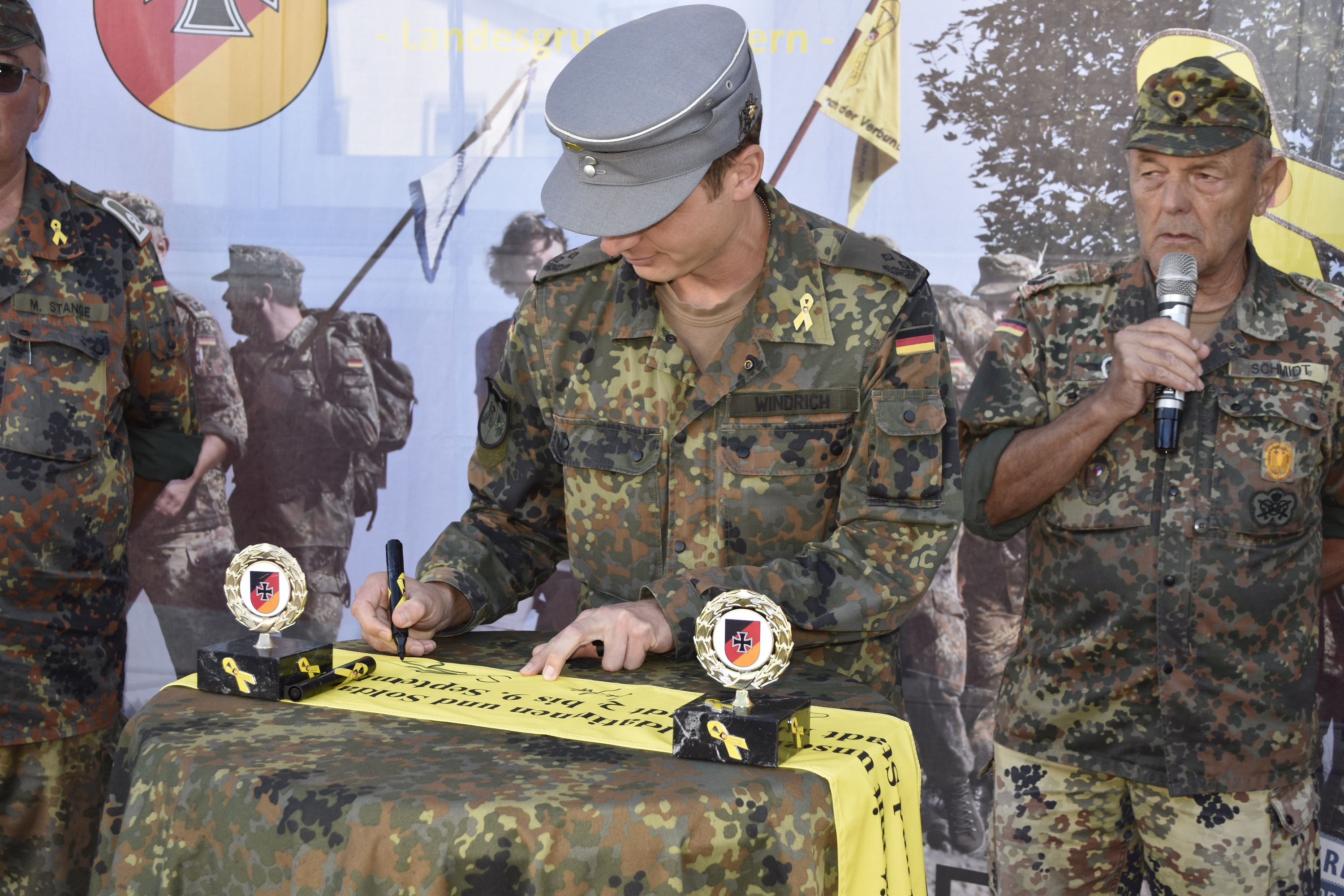 „Als Beauftragter für Reservistenangelegenheiten freue ich mich sehr darüber, eine weitere Gelegenheit für die Intensivierung der Solidarität der deutschen Bevölkerung mit der Bundeswehr unterstützen zu dürfen. Dass der Marsch der Verbundenheit durch die Reserve – einer besonders starken Brücke zwischen Zivilgesellschaft und Militär – in Verbindung mit der Öffentlichkeit organisiert wird, zeigt bereits den Erfolg der „Gelben Schleife“. Ich wünsche allen Teilnehmenden einen erlebnisreichen Marsch von Denkendorf nach Beilngries im Zuge des wunderschönen Altmühltals, um auch dort ein Zeichen der Solidarität zu setzen.“