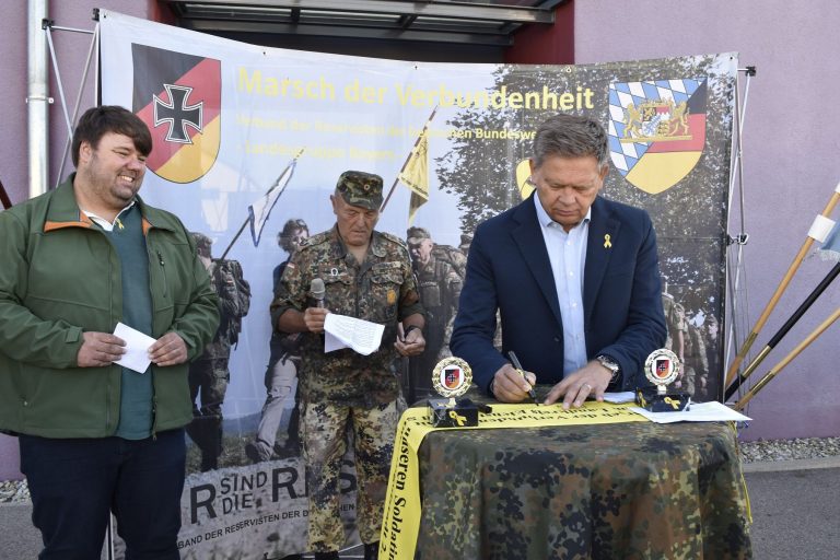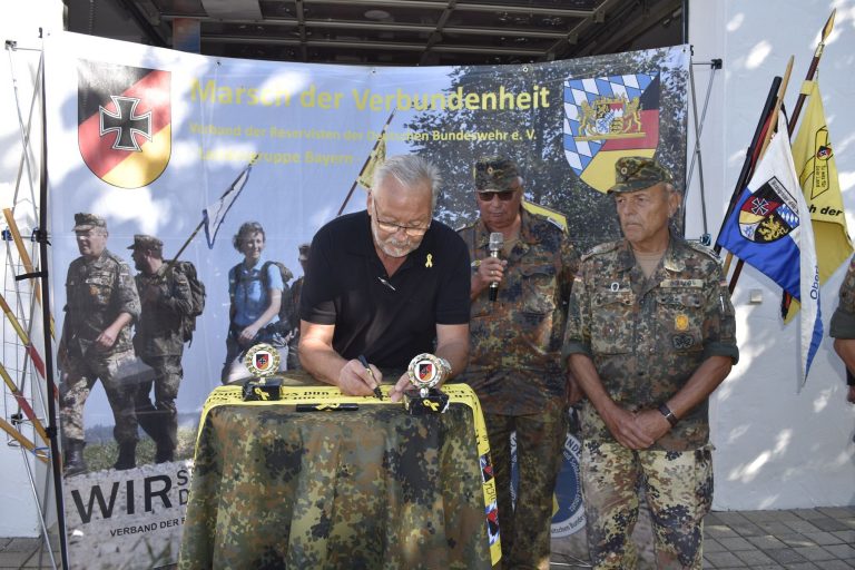 In diesem Sinne engagieren sich auch die Mitglieder des Reservistenverbands. Ich danke Ihnen allen sehr herzlich für ihren vorbildlichen Einsatz und wünsche Ihnen viel Freude beim Marsch der Verbundenheit!“