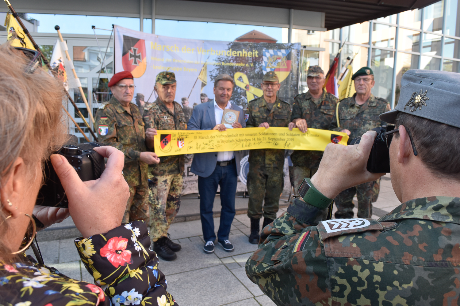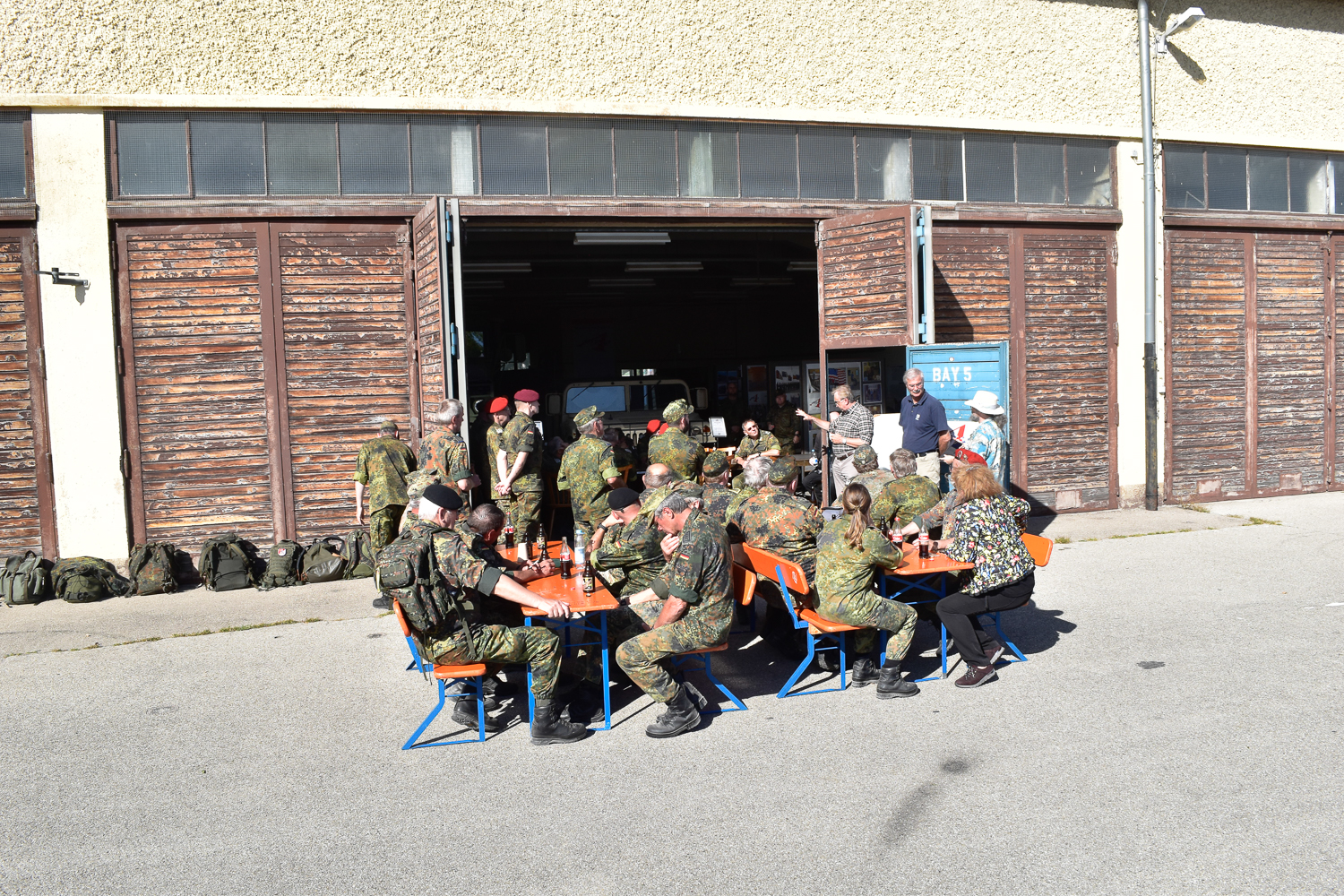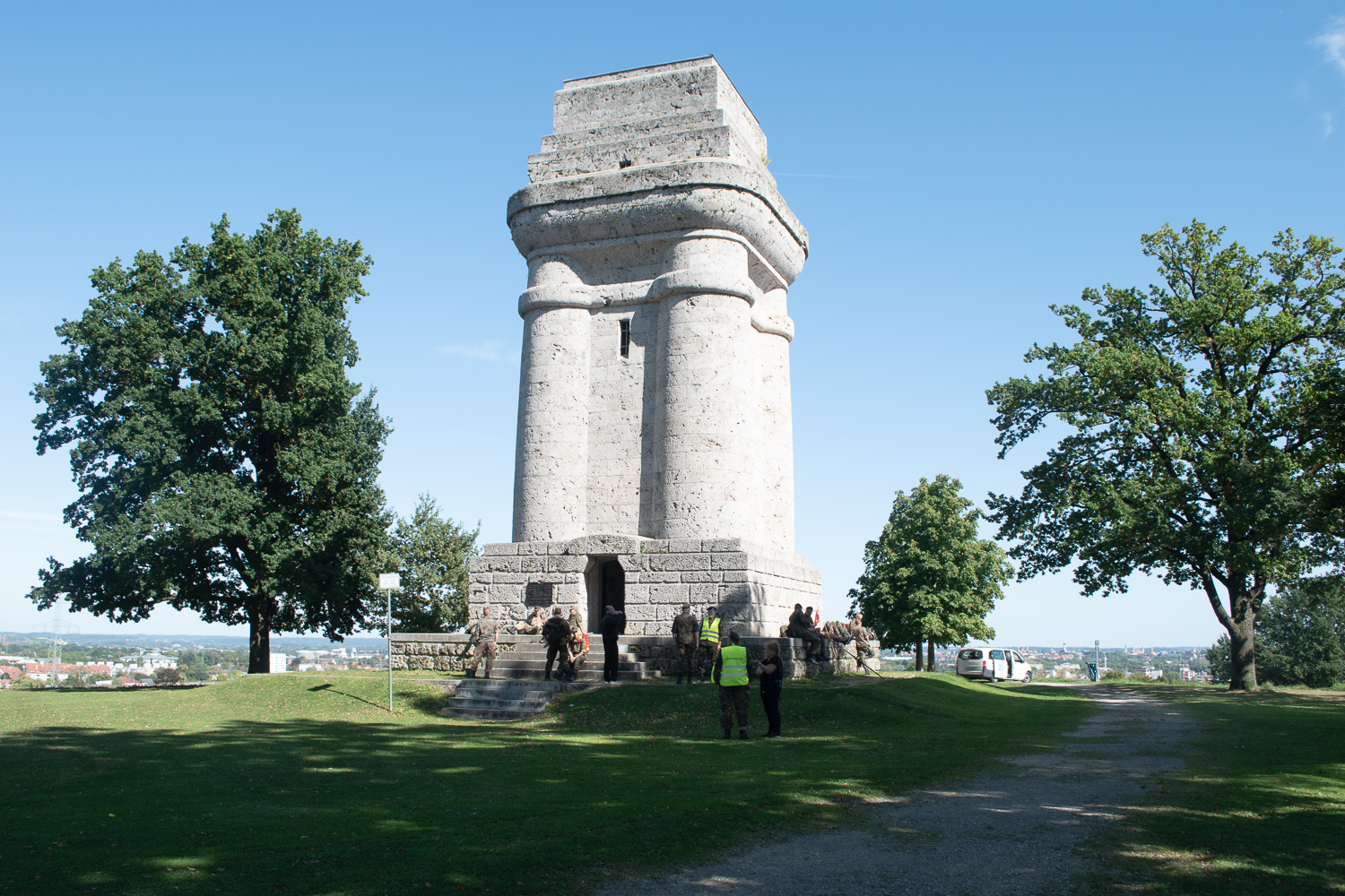 Empfang und Mittagsverpflegung in Neusäß, Besuch am Grab eines in Afghanistan tötlich verunglückten Kameraden. Bismarckturm und Abschluss in der ehemaligen Sheridan-Kaserne.