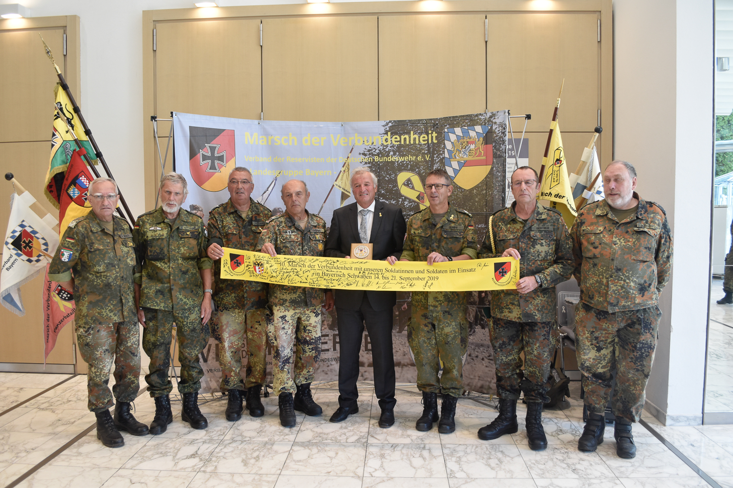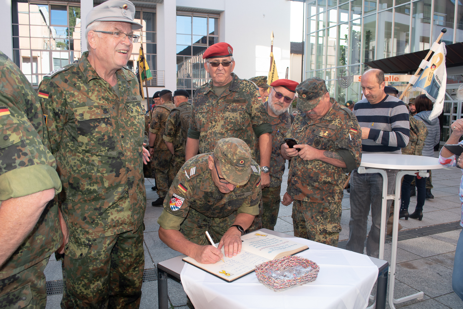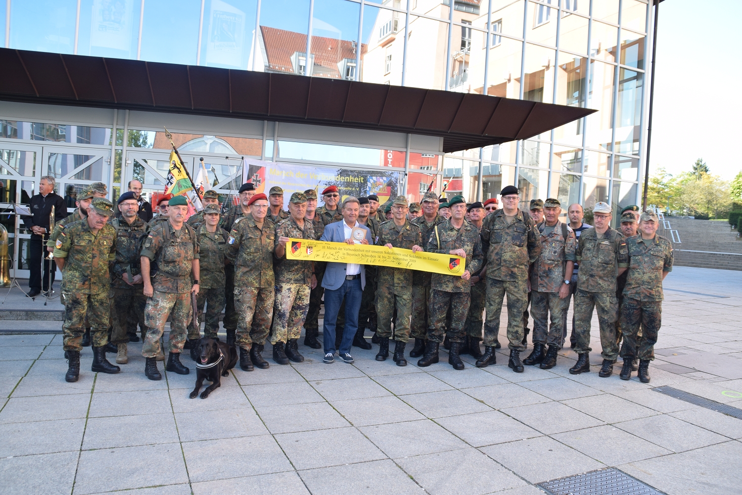 Empfang und Mittagsverpflegung in Neusäß, Besuch am Grab eines in Afghanistan tötlich verunglückten Kameraden. Bismarckturm und Abschluss in der ehemaligen Sheridan-Kaserne.
